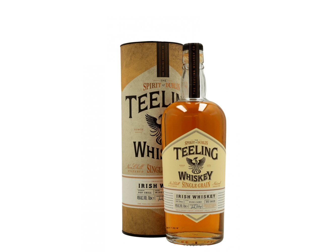 Teeling Single Grain Irish Whiskey breaks the mold with a 95% corn and 5% malted barley mash bill. Triple-distilled and matured solely in French oak ex-Cabernet Sauvignon red wine casks from California, it delivers a truly distinctive Irish Whiskey.